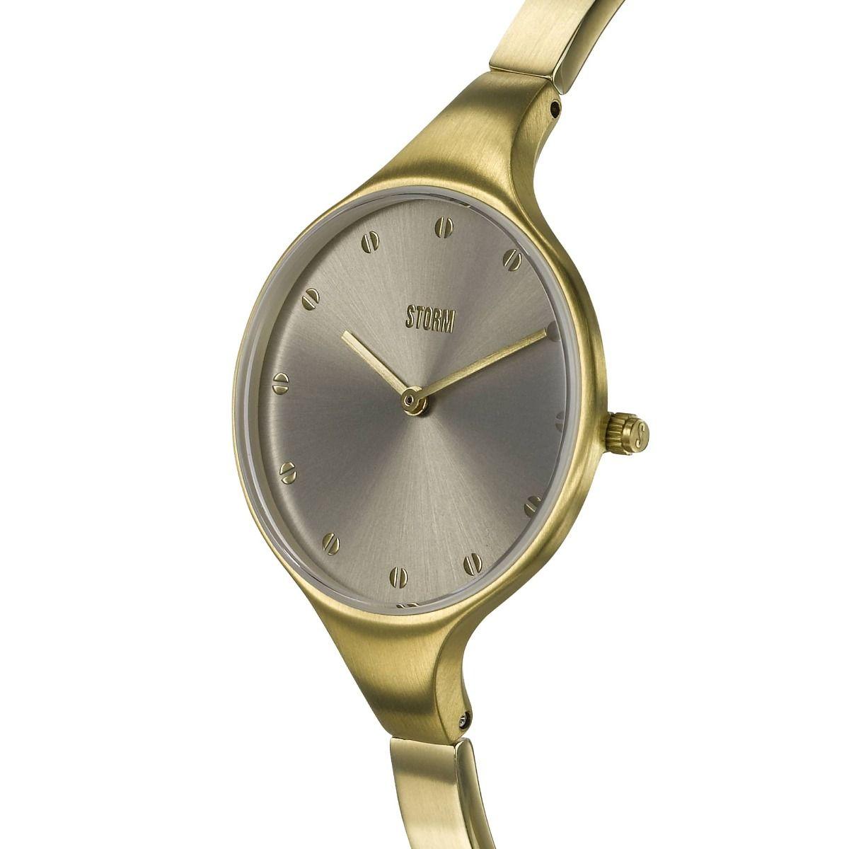 Τό STORM Olenie είναι ένα slim bangle ρολόι από βουρτσισμένο ατσάλι, επίχρυσο 21kt καί Μπεζ-γκρι καντράν. Εχει easilink συνδέσμους ώστε νά ρυθμίζεται εύκολα γιά νά εφαρμόζει στό μέγεθός σας. Είναι αδιάβροχο έως 50 Μ. Είναι στύλ statement.