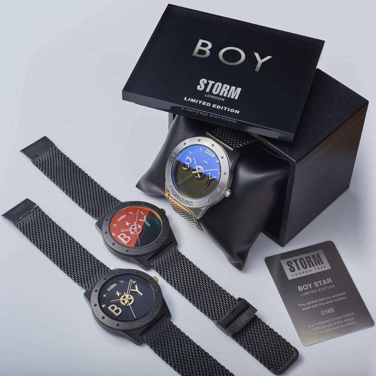 Τό Boy Star είναι η πρώτη συνεργασία τής STORM μέ τό  ανανεωμένο streetwear brand Boy London. Limited Edition μέ 2000 τεμάχια παγκοσμίως, διατίθεται μέ Limited Edition κουτί καί αριθμημένο μεταλλικό πιστοποιητικό. Ενα έντονο καντράν μέ έντονο τό ''ΒΟΥ'' κάθεται σέ ένα εύκολα ρυθμιζόμενο παχύ πλεχτό λουράκι κατασκευασμένο από βουρτσισμένο ανοξείδωτο ατσάλι. Ο STORM signature Lazer blue φακός είναι ιριδίζων  καί μπορεί νά έχει διαφορετικές αποχρώσεις τού μπλέ υπό διαφορετικό φώς.