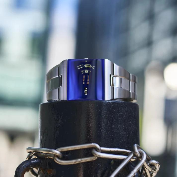 Τό STORM New Remi Square έχει φουτουριστικό απήλ μέ signature μηχανή  περιστρεφομένων δίσκων. Τό θολωτό lazer blue  κρύσταλλο έχει 2 περιστρεφόμενους δίσκους πού δείχνουν τίς ώρες καί τά λεπτά καθώς καί έναν πολύχρωμο μετρητή δευτερολέπτων. Τό New Remi sq έχει signature STORM μπρασελέ κατασκευασμένο από βουρτσισμένο ανοξείδωτο ατσάλι. Τό STORM signature lazer blue τζάμι είναι ιριδίζον καί μπορεί νά εμφανίζει διάφορες αποχρώσεις τού μπλέ υπό διαφορετικό φώς.