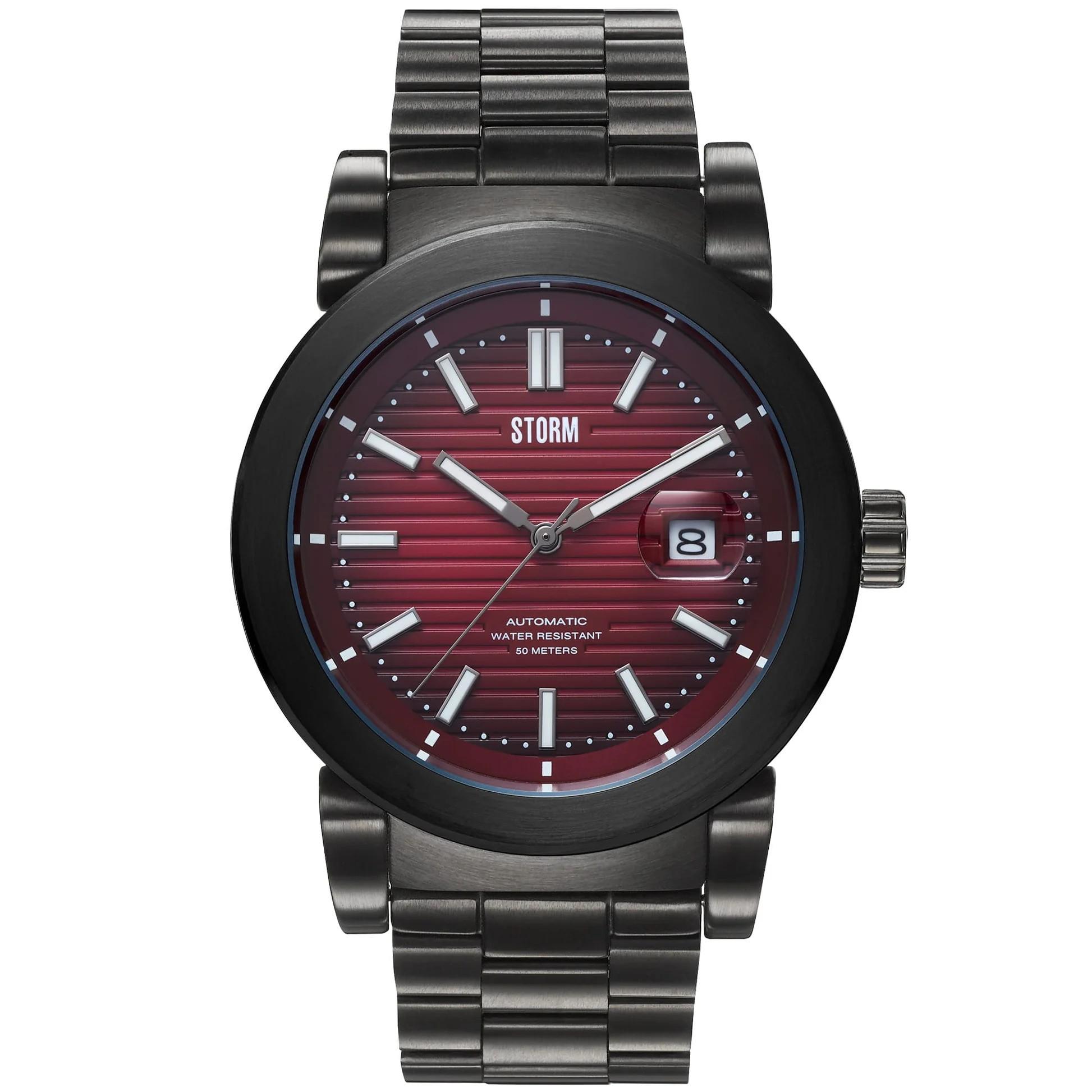 Τό STORM Hydromatic είναι μία έντονη έκφραση μηχανικού design καί industrial στύλ. Φτιαγμένο από υψηλής ποιότητας ανοξείδωτο ατσάλι, Slate Ion Plated, αυτό τό εκπληκτικό ρολόι έχει μοναδική κάσα μέ πλαινά ανοίγματα, προσφέροντας μία φευγαλέα ματιά στήν αυτόματη μηχανή. Τό ανάγλυφο κόκκινο καντράν έλκει οπτικά καθώς καί η πρακτική οθόνη ημερομηνίας. Γυρίστε τό ρολόι ανάποδα γιά νά αποκαλυφθεί η αυτόματη κίνηση μέσα από τό γυάλινο πίσω καπάκι. Μέ αδιαβροχότητα 50 Μ, τό Hydromatic είναι κατασκευασμένο νά φοριέται κάθε μέρα - δυναμικό, διακριτικό, καί αναμφισβήτητα STORM.