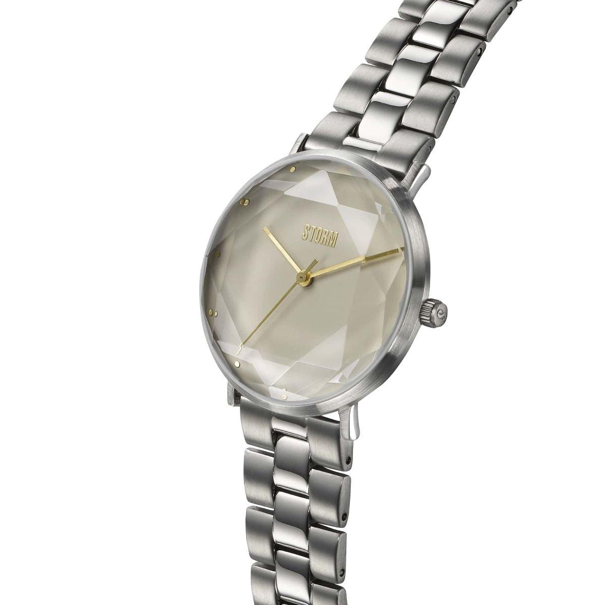 Τό STORM Elexi είναι ρολόι statement, μέ μοναδικό διακοσμητικό κρυστάλλινο καντράν. Αυτό τό σοφιστικέ ρολόι έχει πρόσωπο μπεζ-γκρι κόσμημα καί δίχρωμο βουρτσισμένο/γυαλισμένο ατσάλινο μπρασελέ. Τό τέλειο ρολόι μόδας γιά μέρα η βράδυ..