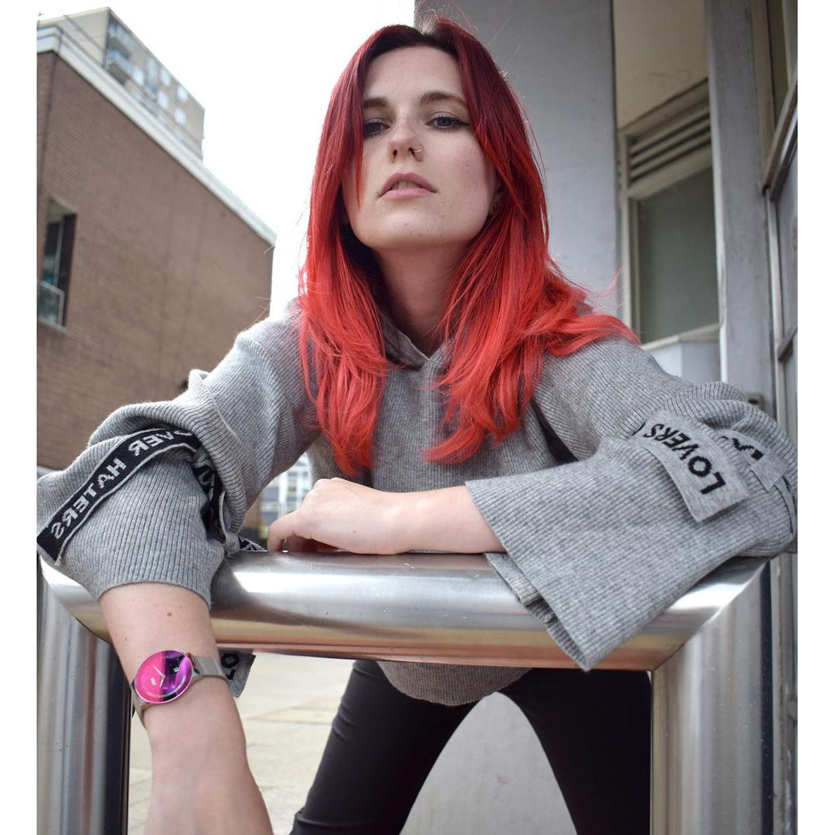 στυλάτο ρολόι, μέ τό λεπτό ατσάλινο πλεχτό λουράκι καί τό μοναδικό απ'